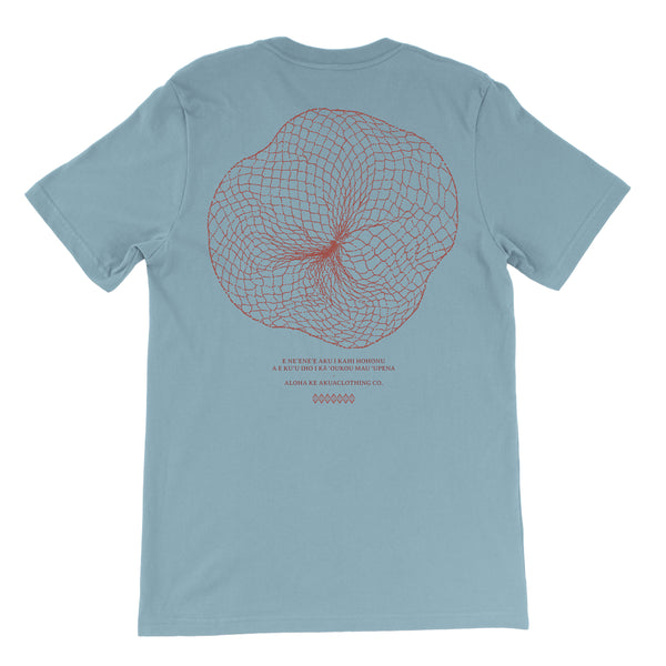 The ‘Upena Tee is inspired by Luke 5:4. After the disciples had been fishing all day Jesus told them, " E neʻeneʻe aku i kahi hohonu, a e kuʻu iho i kā ʻoukou mau ʻupena..." - "Launch out into the deep and let down your nets..."